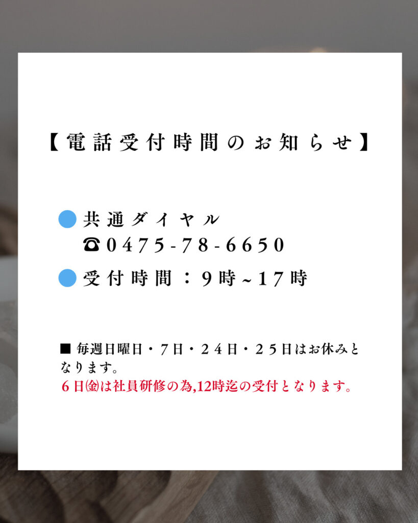 ※店休日のお知らせは毎月ブログとSNSにてお知らせします。
