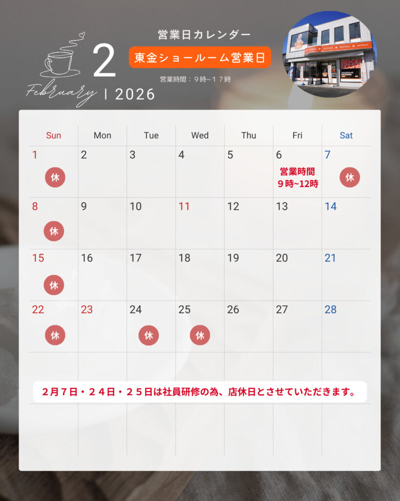 2月の店休日のお知らせ