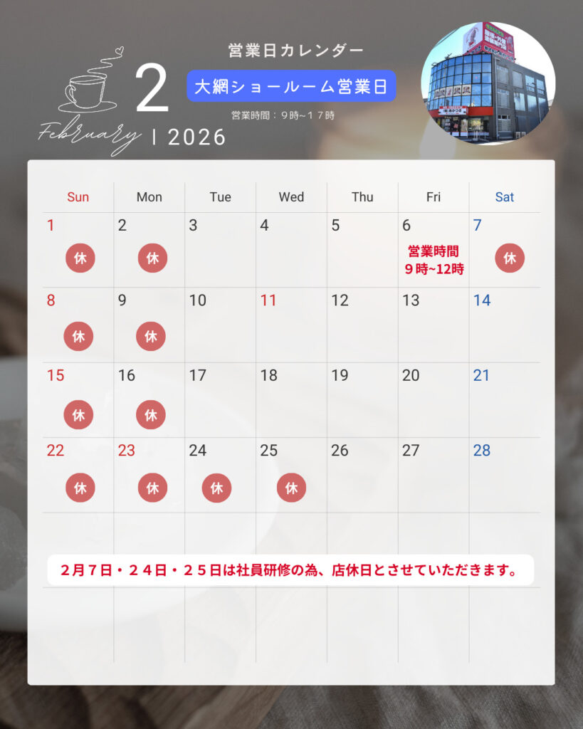 📌 2/6㈮は社員研修の為 12時迄の営業となります。